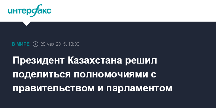 Москва. 29 мая. INTERFAX.RU - Президент Казахстана Нурсултан Назарбаев считает целесообразным расширить полномочия парламента и правительства своей страны.