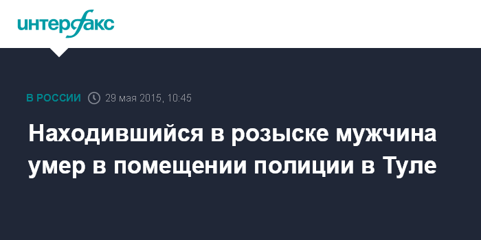 Москва. 29 мая. INTERFAX.RU - В Туле устанавливают обстоятельства смерти жителя областного центра, который скончался в помещении полиции на городском автовокзале, сообщил "Интерфаксу" в пятницу руководитель пресс-службы областного УМВД Андрей Ярцев.