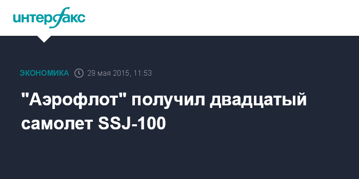 "Передав двадцатый самолет, мы завершили поставку второй десятки SSJ-100 стартовому заказчику. До конца 2015 г. в "Аэрофлот" планируется передать еще 8 самолетов",- отметил президент ГСС Илья Тарасенко.