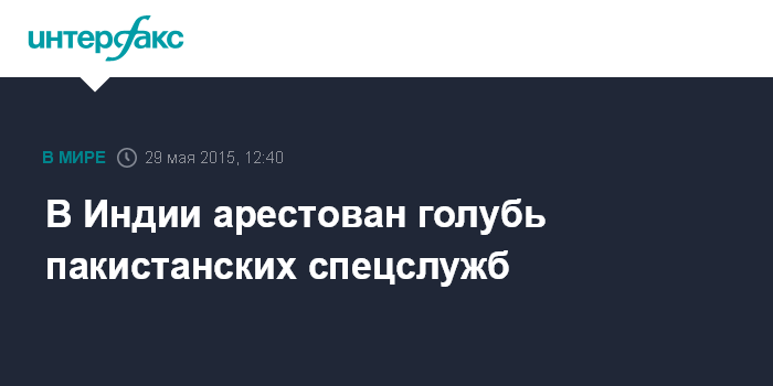 Москва. 29 мая. INTERFAX.RU – Полиция индийского штата Пенджаб отловила голубя, которого "подозревают" в шпионаже в пользу Пакистана, сообщает в пятницу газета Times of India.