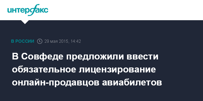 Москва. 29 мая. INTERFAX.RU - В Совете Федерации выступают за усиление ответственности онлайн-компаний, торгующих авиабилетами, заявил журналистам в пятницу сенатор Владимир Полетаев.