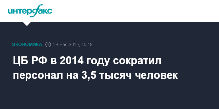 В апреле первый зампред ЦБ РФ Георгий Лунтовский заявил журналистам, что в 2015 году Банк России продолжит начавшееся ранее сокращение штата, но точная цифра по этому году будет определена позднее.