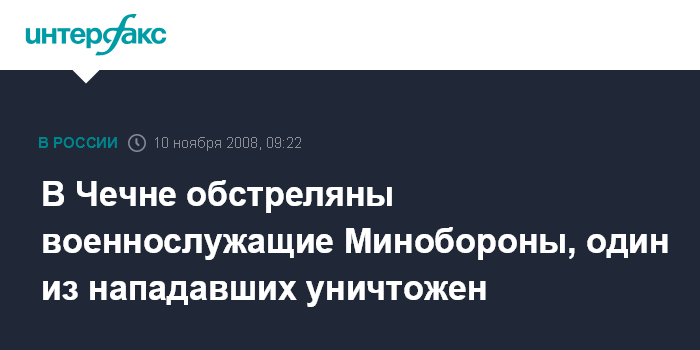 В Чечне обстреляны военнослужащие Минобороны, один из нападавших уничтожен
