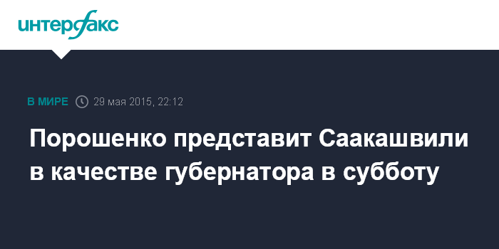 Порошенко представит Саакашвили в качестве губернатора в субботу