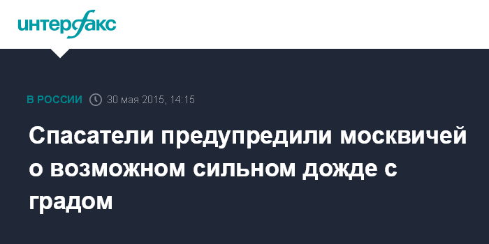 Москва. 30 мая. INTERFAX.RU - Столичные спасатели предупреждают жителей Москвы о неблагоприятных погодных условиях, в том числе сильном дожде и граде.
