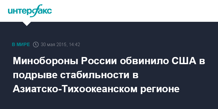 Минобороны России обвинило США в подрыве стабильности в Азиатско-Тихоокеанском регионе