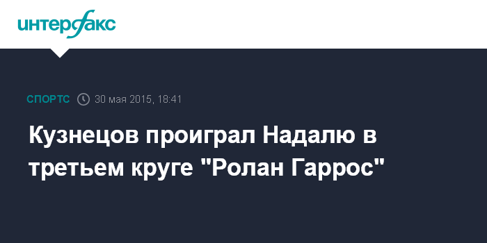 Москва. 30 мая. INTERFAX.RU - Испанский теннисист Рафаэль Надаль вышел в четвертый круг Открытого чемпионата Франции, обыграв россиянина Андрея Кузнецова - 6:1, 6:3, 6:2.