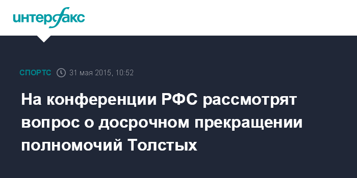 29 апреля Исполком РФС принял решение вынести на рассмотрение конференцией РФС вопрос о досрочном прекращении полномочий президента организации Николая Толстых. Против внесения данного вопроса на повестку дня конференции РФС проголосовал лишь один член исполкома.