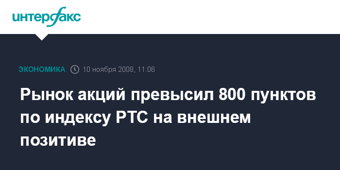 Рынок акций превысил 800 пунктов по индексу РТС на внешнем позитиве