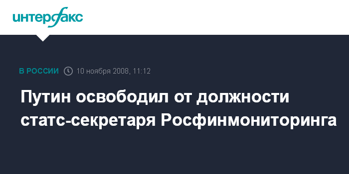 Путин освободил от должности статс-секретаря Росфинмониторинга