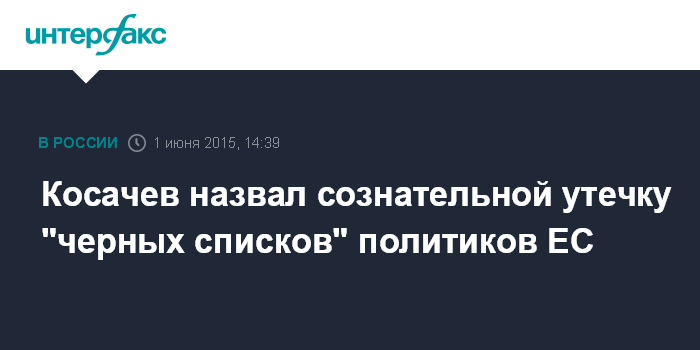 "Эта утечка не является нормальной практикой, и эти списки передавались представителям Евросоюза с предупреждением, что они не носят публичного характера. И то, что эта утечка произошла, я уверен, она была осознанной и сделанной специально, с тем, чтобы максимально обострить ситуацию, спровоцировать ее и попытаться людям, не очень искушенным в развитии событий, представить все это как односторонний и ничем не обоснованный акт со стороны России", - сказал "Интерфаксу" Косачев.
