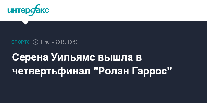 Москва. 1 июня. INTERFAX.RU - Американка Серена Уильямс завоевала путевку в 1/4 финала Открытого чемпионата Франции по теннису.