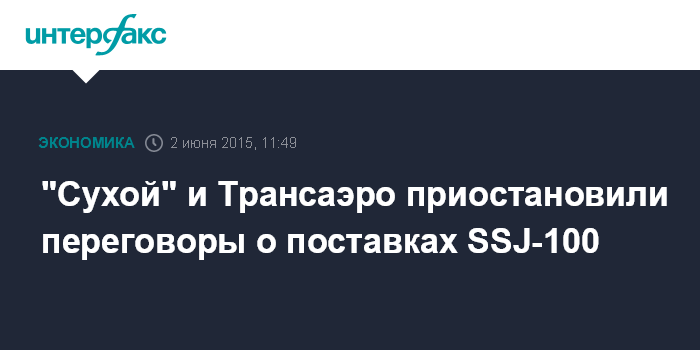 Москва. 2 июня. INTERFAX.RU - ОАО "АК Трансаэро" и ЗАО "Гражданские самолеты Сухого" (ГСС) приостановили переговоры о поставках самолетов SSJ-100, сообщил журналистам во вторник старший вице-президент ГСС по продажам Евгений Андрачников.