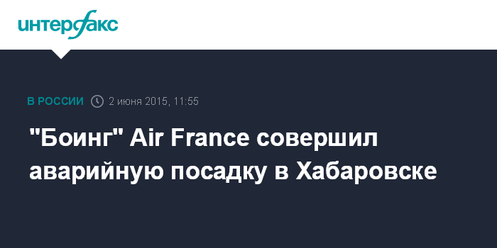 Ранее со ссылкой на источник в экстренных службах сообщалось, что "Боинг" Air France вынужденно приземлился в Хабаровске из-за отказа одного из двигателей.