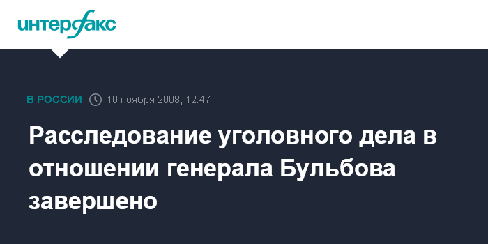 Расследование уголовного дела в отношении генерала Бульбова завершено