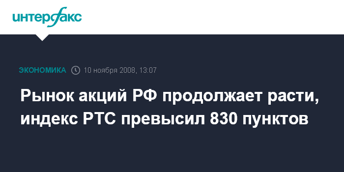 Рынок акций РФ продолжает расти, индекс РТС превысил 830 пунктов
