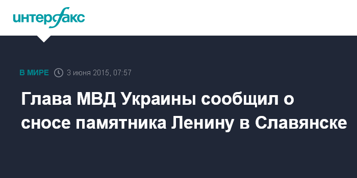Глава МВД Украины сообщил о сносе памятника Ленину в Славянске