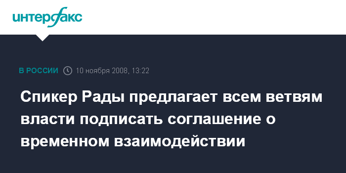 Москва. 10 ноября. INTERFAX.RU - Председатель Верховной Рады Арсений Яценюк предложил парламенту, правительству и президенту страны подписать соглашение о временном взаимодействии на период до разрешения экономического и политического кризисов на Украине.