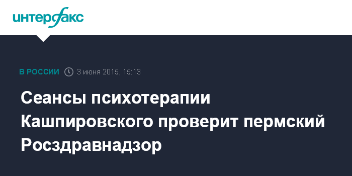 Москва. 3 июня. INTERFAX.RU - Прокуратура Пермского края переадресовала в Росздравнадзор запрос местного депутата с требованием проверить деятельность психотерапевта Анатолия Кашпировского во время его гастролей в Перми, сообщили агентству "Интерфакс" в пресс-службе надзорного ведомства.