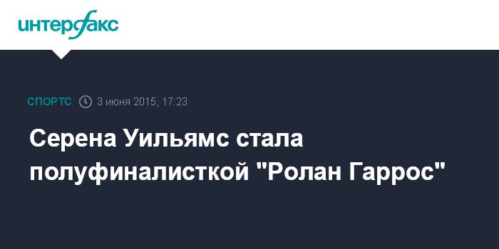 Москва. 3 июня. INTERFAX.RU - Американская теннисистка Серена Уильямс завоевала путевку в полуфинал Открвтого чемпионата Франции.