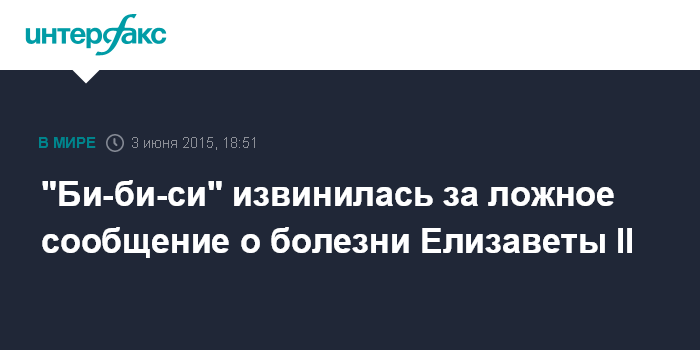 Москва. 3 июня. INTERFAX.RU - Телерадиокорпорация "Би-би-си" в среду извинилась за сообщение о госпитализации королевы Елизаветы II.