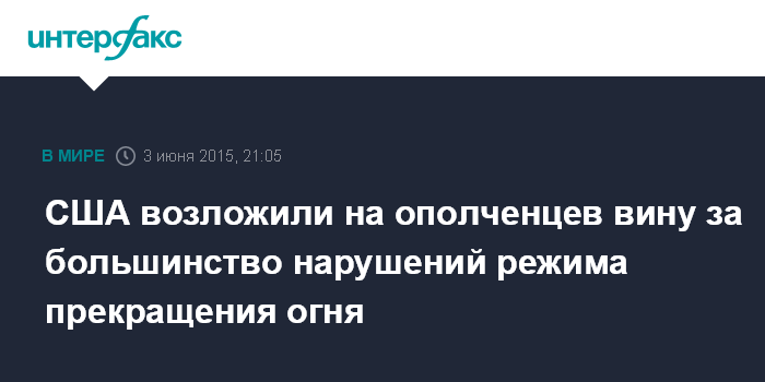 США возложили на ополченцев вину за большинство нарушений режима прекращения огня