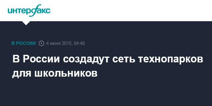 Москва. 4 июня. INTERFAX.RU - Агентство стратегических инициатив (АСИ) разработало проект "Национальной системы мотивации детей к всестороннему развитию", предусматривающий создание в РФ масштабной сети детских технопарков, пишет газета "Коммерсант".