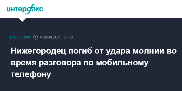 Нижегородец погиб от удара молнии во время разговора по мобильному телефону