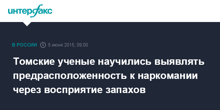 Москва. 5 июня. INTERFAX.RU - Сотрудники НИИ психического здоровья (ПЗ) Томского научного центра СО РАМН разрабатывают обонятельный тест для идентификации физиологической предрасположенности подростков к приему психоактивных веществ, сообщает в пятницу пресс-служба инновационных организаций Томской области.