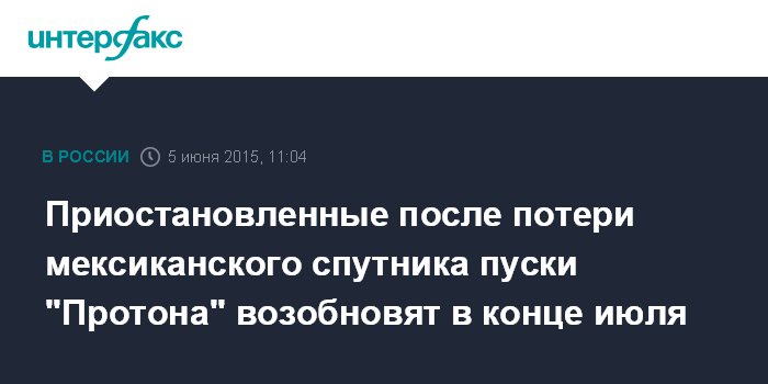 Приостановленные после потери мексиканского спутника пуски "Протона" возобновят в конце июля
