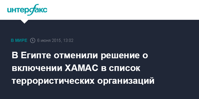 28 февраля этого года судебные власти Египта решили включить палестинское движение ХАМАС, контролирующее сектор Газа, в список террористических группировок. Военное крыло ХАМАС было включено в этот список еще в январе.