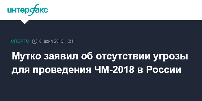Москва. 6 июня. INTERFAX.RU - Министр спорта РФ Виталий Мутко исключил возможность переноса ЧМ-2018 по футболу из России.