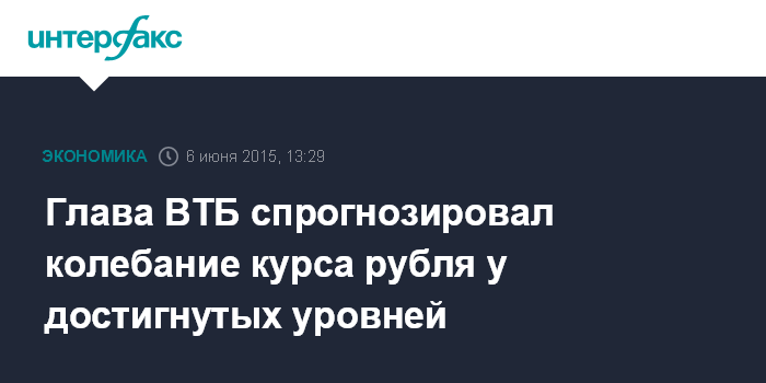Москва. 6 июня. INTERFAX.RU - Глава банка ВТБ Андрей Костин ожидает, что курс рубля в ближайшее время не будет иметь единой тенденции, а продолжит колебаться около достигнутых уровней.