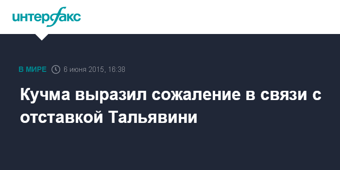 Москва. 6 июня. INTERFAX.RU - Представитель Украины в трехсторонней Контактной группе по урегулированию ситуации на востоке страны Леонид Кучма выразил сожаление в связи с решением Хайди Тальявини уйти с поста спецпредставителя председателя ОБСЕ по Украине.