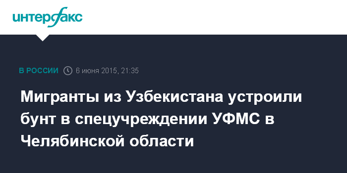 Москва. 6 июня. INTERFAX.RU - Иностранцы, освободившиеся из мест лишения свободы, устроили беспорядки в субботу утром в спецучреждении временного содержания УФМС Челябинской области, сообщил агентству "Интерфакс" начальник отдела кадров областного УФМС Павел Литвин.