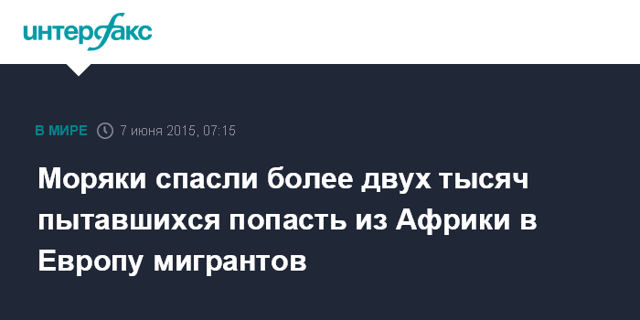 Москва. 7 июня. INTERFAX.RU - Свыше 2 тысяч человек, пытавшихся переправиться из Африки в Италию на деревянных суднах, были подняты из воды в субботу экипажами кораблей ВМФ и береговой охраны Италии, Ирландии и Германии, сообщил базирующийся на Мальте штаб международной спасательной операции.