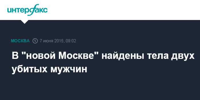 Москва. 7 июня. INTERFAX.RU - Тела двух убитых человек обнаружены в разных районах "новой Москвы" за один день: смерть одного из них наступила от недели до месяца назад; другого - более двух лет назад, сообщил "Интерфаксу" в воскресенье источник в правоохранительных органах.