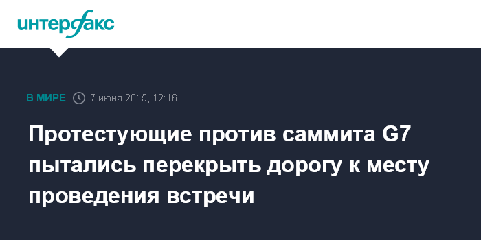 Москва. 7 июня. INTERFAX.RU - Противники саммита "группы семи" попытались заблокировать в воскресенье дорогу, ведущую к баварскому городку Гармиш-Партенкирхен к месту проведения мероприятия, сообщает в твиттере полиция Баварии.