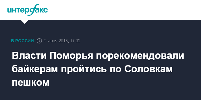 Москва. 7 июня. INTERFAX.RU - Власти Архангельской области опасаются, что мотопробег общества "Русские мотоциклисты" по Соловкам, запланированный на конец июня, может нанести урон природе островов.
