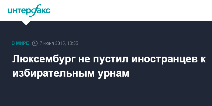Москва. 7 июня. INTERFAX.RU - Граждане Люксембурга на референдуме, прошедшем в Великом Герцогстве в воскресенье, отвергли предложение предоставить избирательные права иностранцам, прожившим в стране 10 и более лет, сообщают местные СМИ по итогам обработки 82% голосов.