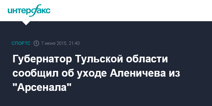 "Дима уходит - жаль, но это жизнь и мы рады за Аленичева! Дима, спасибо большое за "Арсенал"! Вперед за Город-Герой Тулу!" - написал Груздев. Губернатор не уточнил, куда именно уходит Аленичев.