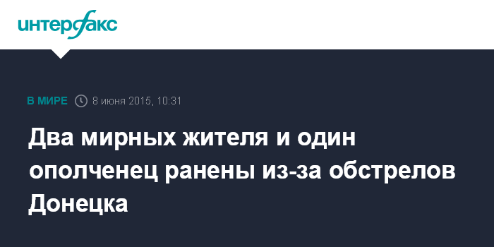 Москва. 8 июня. INTERFAX.RU - В ДНР два мирных жителя и один ополченец ранены в результате обстрелов со стороны позиций украинских военных.