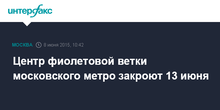 Центр фиолетовой ветки московского метро закроют 13 июня