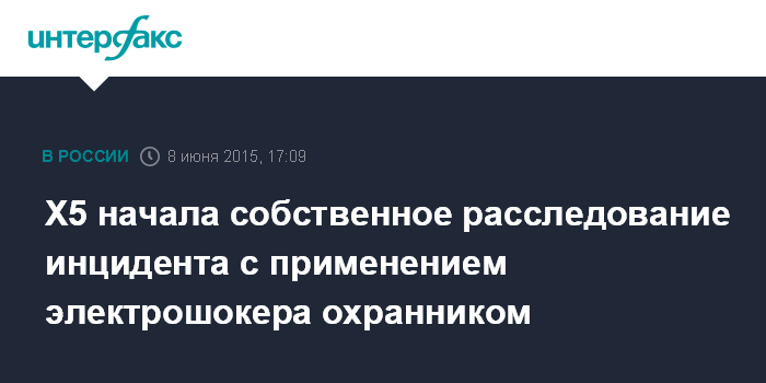 Москва. 8 июня. INTERFAX.RU – Х5 Retail Group проводит внутреннее расследование инцидента в одном из своих магазинов и обещает расторгнуть контракт с охранной фирмой в случае, если подтвердится факт использования электрошокера охранником.