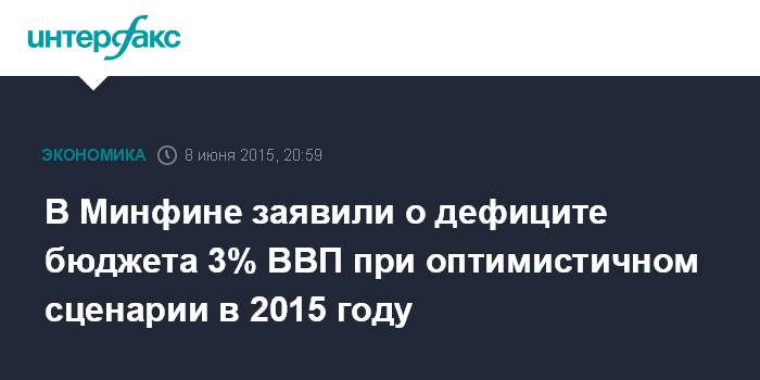 Москва. 8 июня. INTERFAX.RU - Дефицит федерального бюджета РФ по итогам 2015 года может сложиться в размере около 3% ВВП, сообщил замминистра финансов РФ Максим Орешкин.