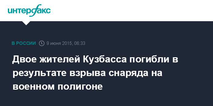 Москва. 9 июня. INTERFAX.RU - На Юргинском военном полигоне (Кемеровская область) обнаружены тела двоих жителей города Юрга, предположительно, погибших от взрыва. Об этом "Интерфаксу" сообщил источник в правоохранительных органах региона.