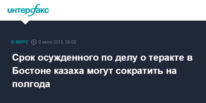 Москва. 9 июня. INTERFAX.RU - Казахстанский студент Азамат Тажаяков, осужденный на 3,5 года за воспрепятствование следствию в ходе расследования теракта в Бостоне, может выйти на свободу раньше, сообщил официальный представитель МИД Казахстана Алтай Абибуллаев.