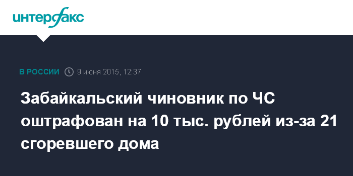 Забайкальский чиновник по ЧС оштрафован на 10 тыс. рублей из-за 21 сгоревшего дома