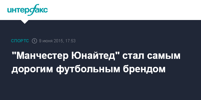 Москва. 9 июня. INTERFAX.RU - Английский футбольный клуб "Манчестер Юнайтед" стал самым дорогим брендом в мире футбола, первым превысив отметку в $1 млрд и опередив мюнхенскую "Баварию", сообщила консалтинговая компания Brand Finance.