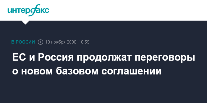 Дата возобновления переговоров РФ-ЕС пока не назначена. Как сообщила член Еврокомиссии Бенита Ферреро-Вальднер, следующий раунд может состояться после предстоящего 14 ноября в Ницце саммита ЕС-Россия и намеченного на 18 ноября начала международной конференции в Женеве по Абхазии и Южной Осетии.